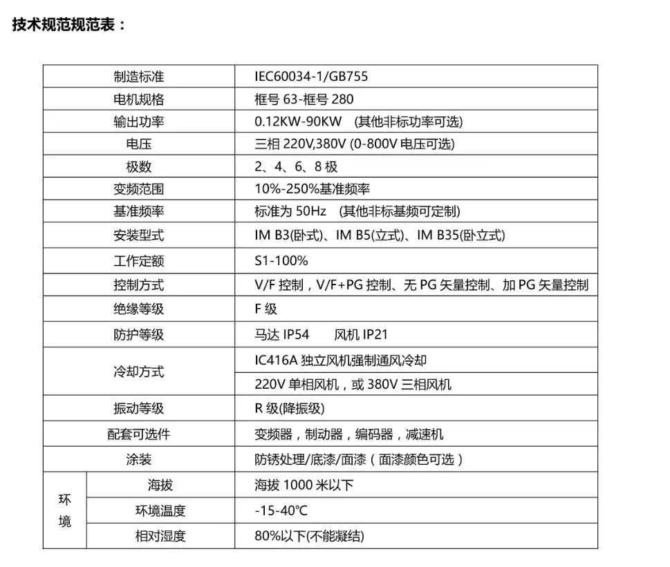 YP變頻系列4極型號