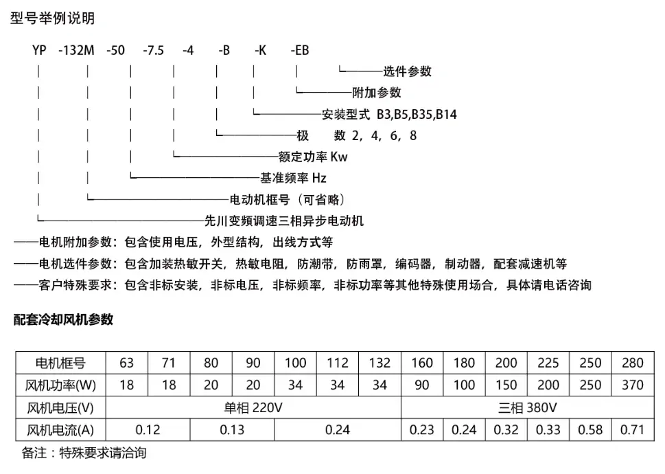 YP變頻系列2極型號: