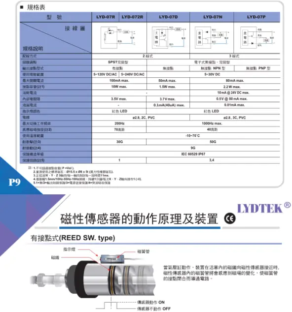 LYDTEK磁性開關(guān)LYD-15系列有:LYD-15R,LYD-15RD,LYD-15N,LYD-15P;