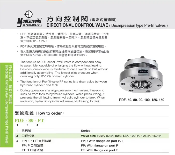 Yuatsuseiki油力滿油閥PF-50-FT PF-80-FT充液閥